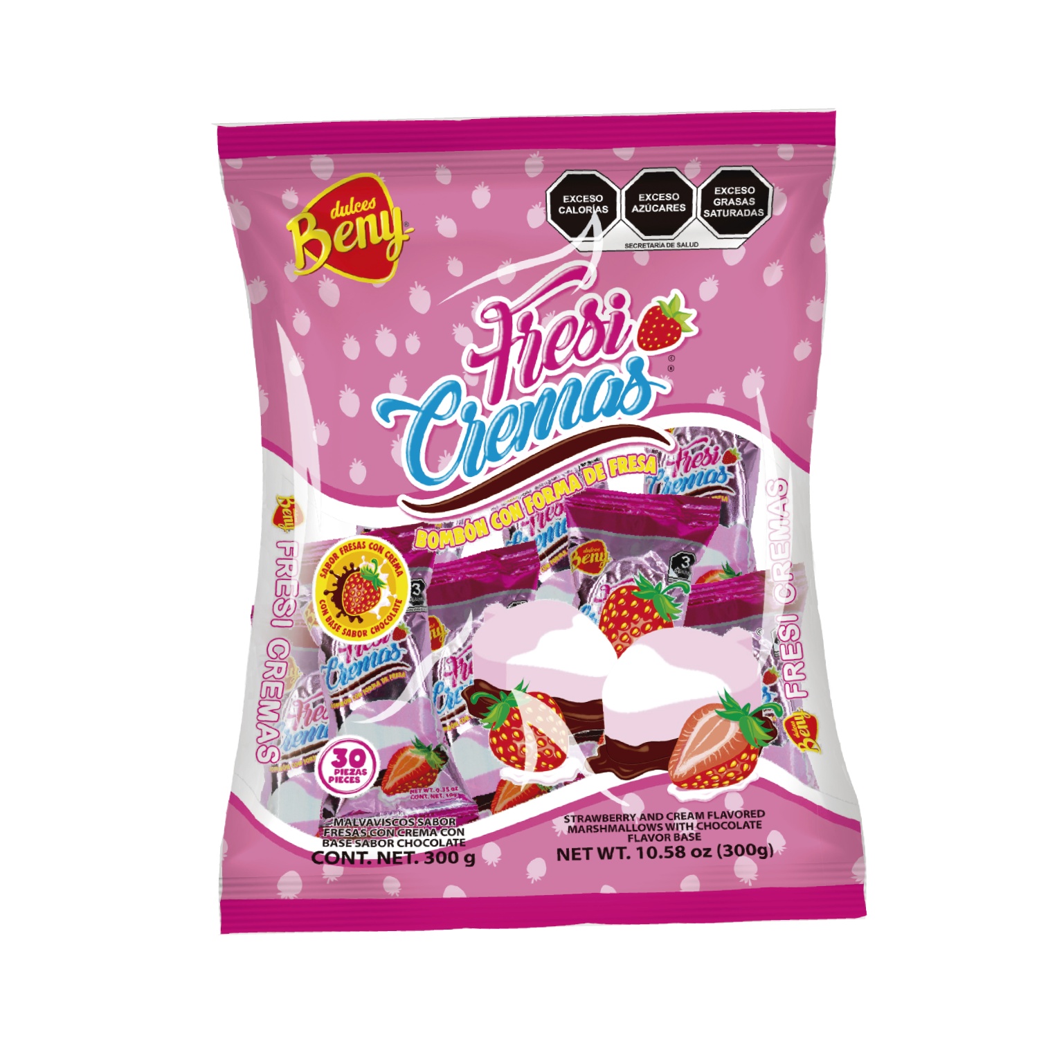 Malvaviscos sabor fresas con crema con base sabor chocolate